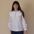 With both a blouse and dress option, and suitable for a wide range of fabrics and potential customisation, this is a pattern designed to be frilly fun! Closing with a button and keyhole at the centre-back, the pattern skims the bust into a loose fit around the waist for ease and comfort – after all, that’s the name of the game right now. The balloon sleeves (with two different length options) gather into elasticated cuffs with ruffled edges echoing the collar. The dress variation has a full gathered (and pocketed) skirt – grunge it up with tights and biker boots for the winter then drift around in breezy cotton lawn and sandals all summer. Wear the blouse on its own or under pinafores, dungarees and v-neck sweaters for statement layering. Size 6-20